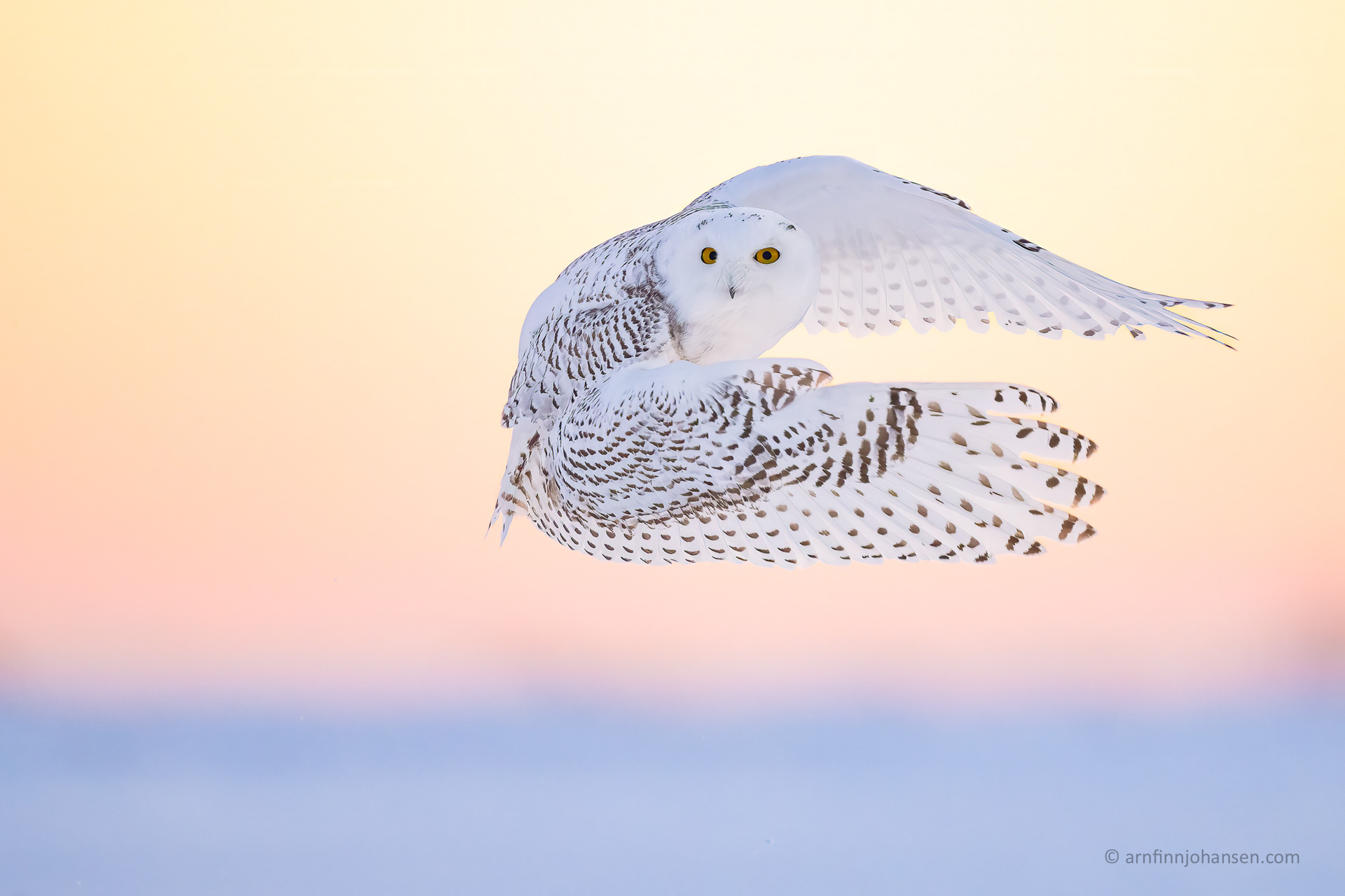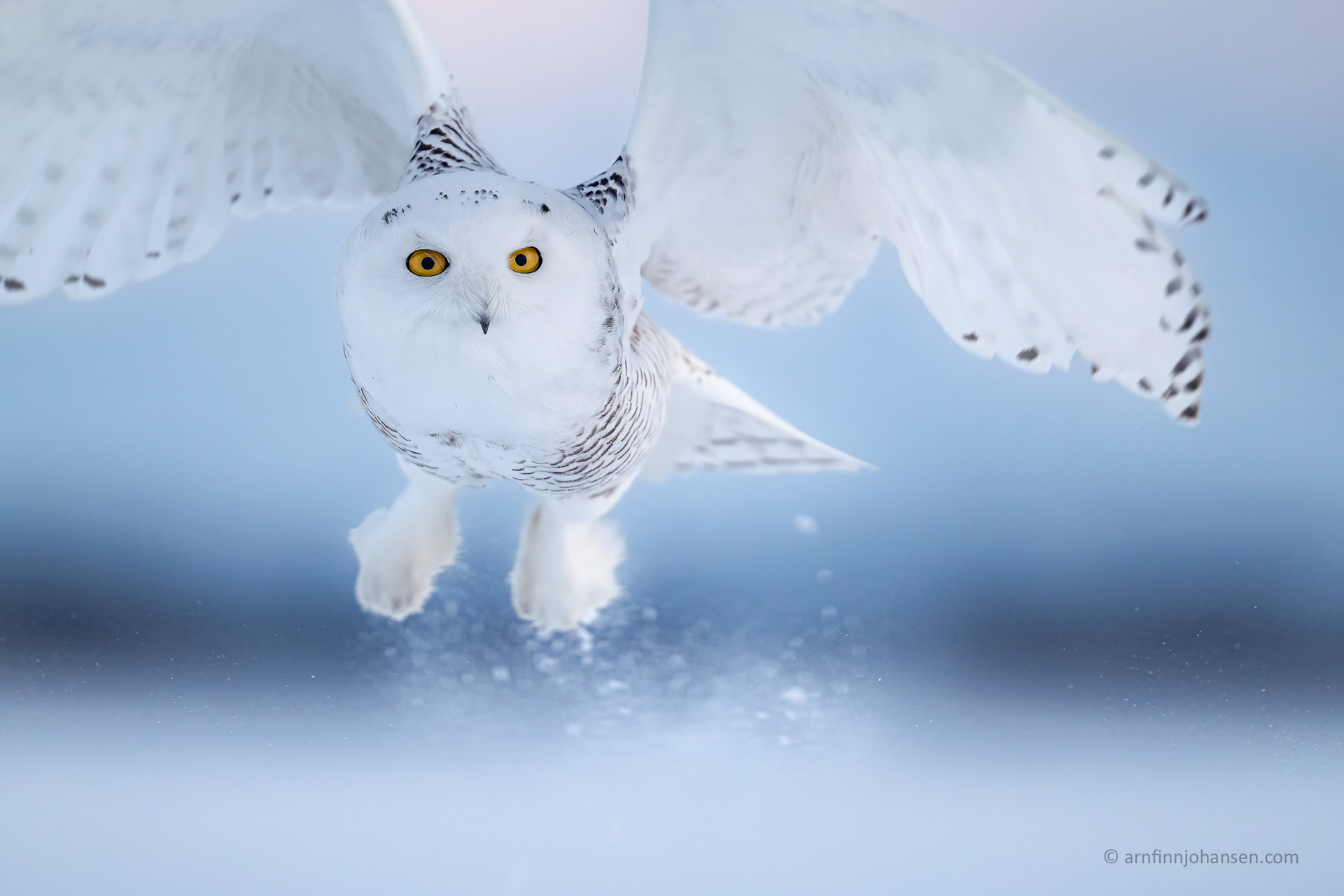 Fem intensiva dagar med fullt fokus på fjälluggla, med både morgonpass och eftermiddags-/kvällspass. Vi kommer att arbeta med fjällugglan i olika situationer från soluppgång till solnedgång: porträtt, beteende, action och flygbilder i motljus, sidoljus, vind, snöväder med stora snöflingor eller i kallt väder med många minusgrader och vackert blått och rosa ljus. Vi kommer att ligga i snön och arbeta med lågt perspektiv med fokus på förgrund och bakgrund, white-out, panorering med mera. Varma kläder och stövlar rekommenderas! Väderförhållandena är som en kall och torr vinter här hemma, vanligtvis mellan -15 och -25 grader Celsius.